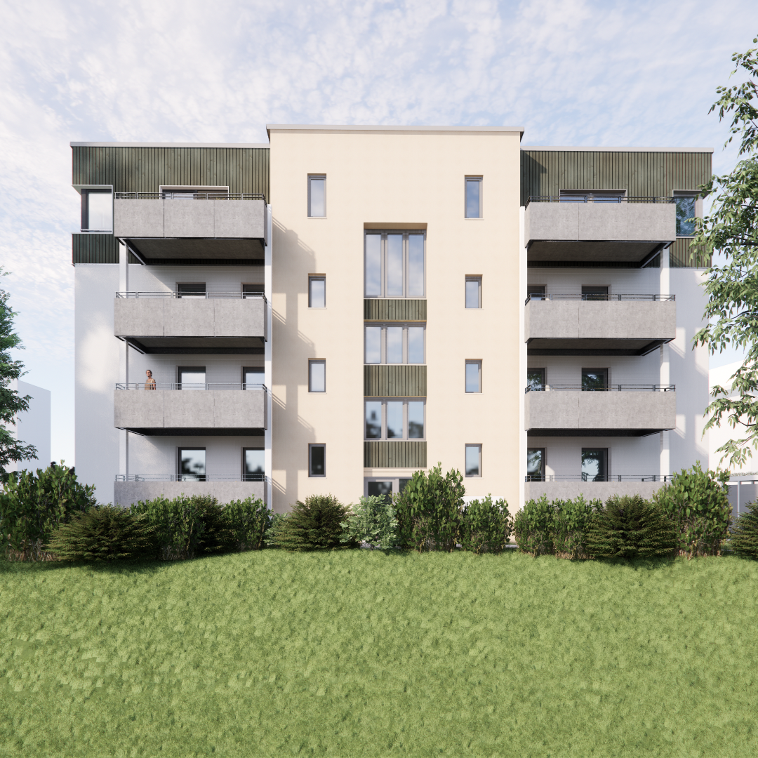 Energetische Sanierung der Gebäudehülle. Aufstockung des Gebäudes um 1 Geschoss und zwei Wohneinheiten.